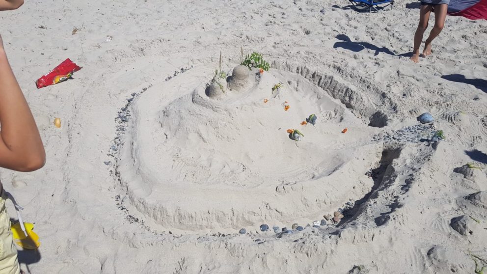 Auch heute – Sonne satt!! Nachdem es in der Nacht tatsächlich ein wenig geregnet hat, waren heute „nur“ 26 Grad auf dem Thermometer, bedeutend angenehmer als die 30+ der letzten Tage. Natürlich erwartete uns wieder der herrliche Nordstrand- neben Sonnen und Baden stand der Sandburgencontest auf dem Plan, der auch gut gemeistert wurde. Heute Abend noch ein paar Spiele und der Sonnenuntergang…