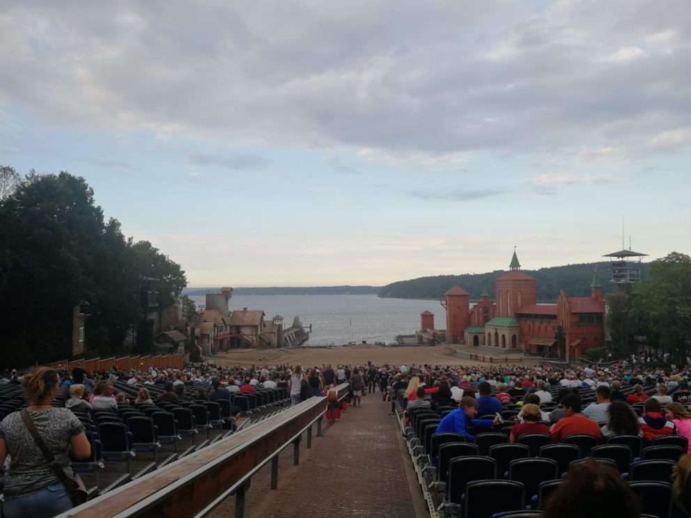 Schönstes Wetter weckte uns, strahlend blauer Himmel und Sonne satt. Bei 20 Grad gings für eine Gruppe an den Bodden zu verschiedenen Strandspielen und Baden. Die zweite Gruppe war mit dem GPS-Spiel dran und die Surfer gingen aufs Wasser. Abends ging es für die zweite Hälfte unseres Ostseeferienlagers via Schiff zu Störtebeker nach Ralswiek….