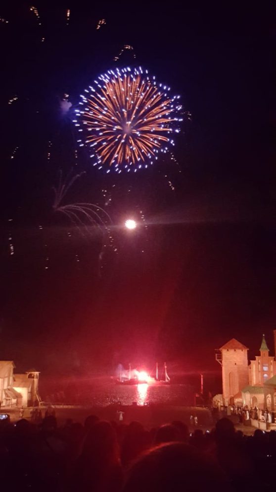 Die Zeit vergeht wie im Fluge – tatsächlich schon Halbzeit heute Abend!! Ein aktiver Tag wars: GPS-Rallye mit Piratenaufgaben für den nächsten Schnipsel der Schatzkarte, Tischtennisturniere, surfen für die „Wasserrattengruppe“ und natürlich für die erste Hälfte der Teilis die Schiffsfahrt zu den „Störtebekerfestspielen“! Dann wurde noch die Mondfinsternis betrachtet und nunmehr liegen alle schlafend in den Betten….. 🙂