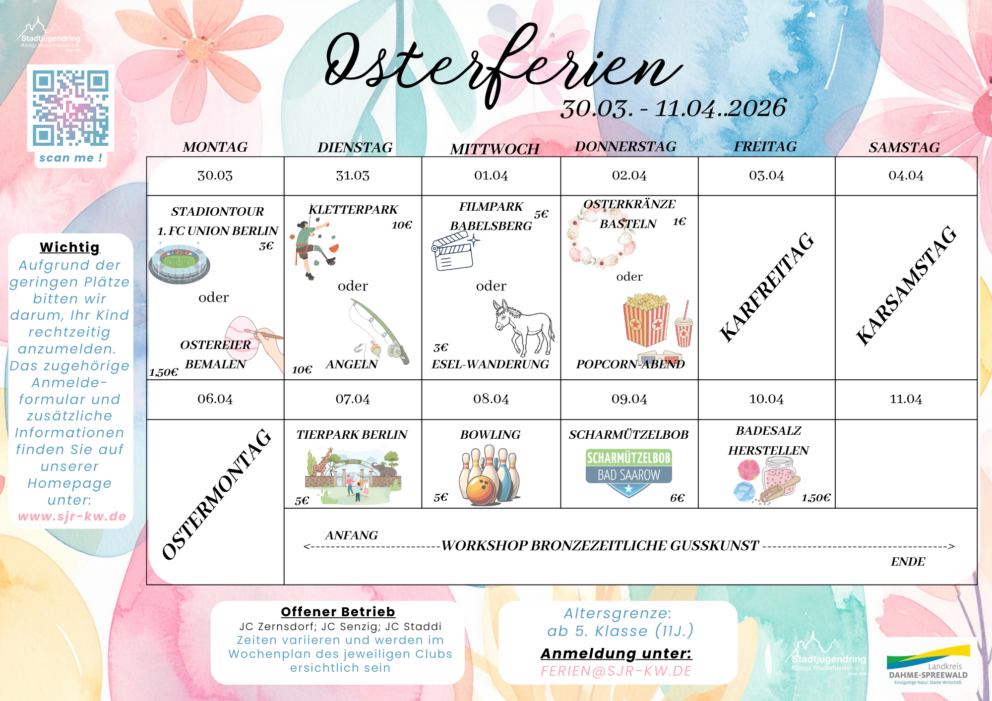Auch für diese Osterferien hat der Stadtjugendring Königs Wusterhausen e.V. wieder ein aufregendes Programm für Euch zusammengestellt.