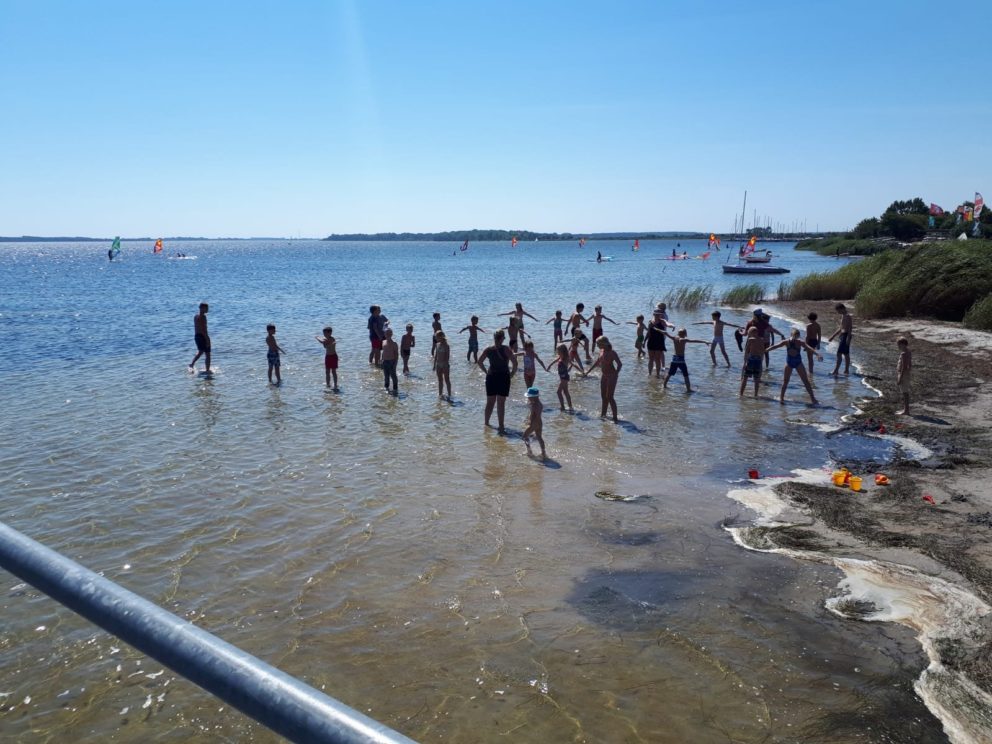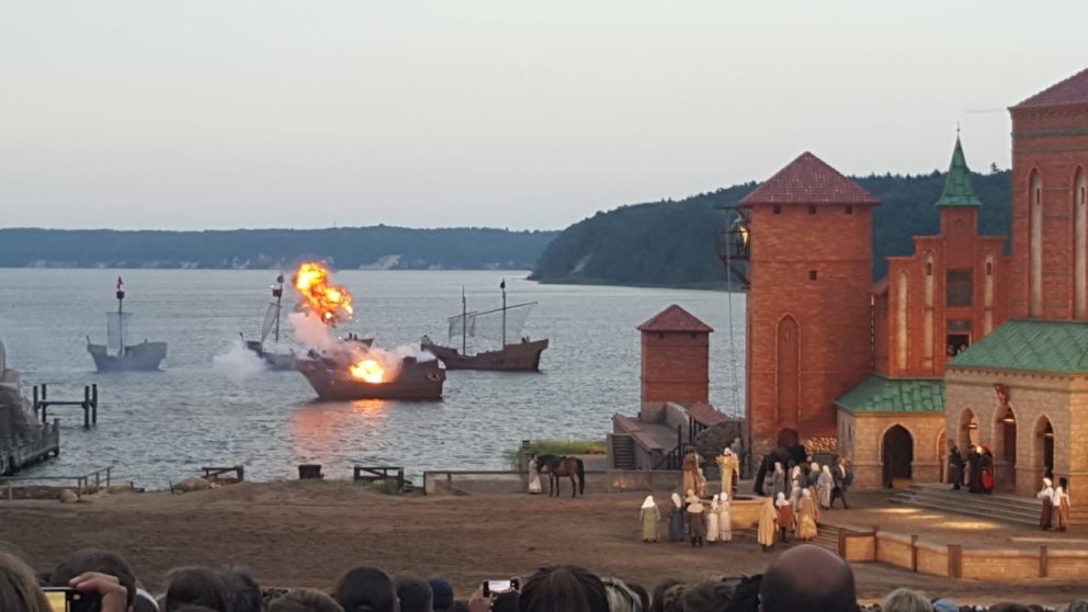 Boah, mehr Wetter geht ja gar nicht! Welch Jahrhundertsommer an der Ostsee – wieder über 30 Grad, wieder Sonne ohne Ende. Da lässt es sich nur in Wassernähe aushalten mit ein paar kleinen Spielchen – und natürlich IM Wasser… 😉 Abends ging’s heute für die Jungs zu den Störtebekerfestspielen, während die Mädels noch einen Film schauten…