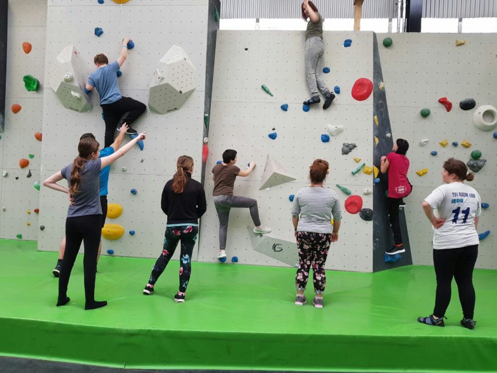 Schritt für Schritt by Franziska Müller on 15. März 2018 in Mobile Jugendarbeit Kernstadt, News Heut ging es für uns bei einem Kletternachmittag hoch hinaus. Schritt für Schritt schafften wir es bei jedem Versuch ein Stückchen höher, sodass eigene Grenzen und Ängste, mit moralischem Beistand der Gruppe, gemeinsam überwunden werden konnten. Teilen mit:Teilen Klick, um auf Facebook zu teilen (Wird in neuem Fenster geöffnet) Facebook Klicke, um auf X zu teilen (Wird in neuem Fenster geöffnet) X Klicken, um auf WhatsApp zu teilen (Wird in neuem Fenster geöffnet) WhatsApp Klicken zum Ausdrucken (Wird in neuem Fenster geöffnet) Drucken