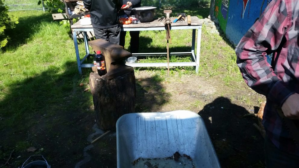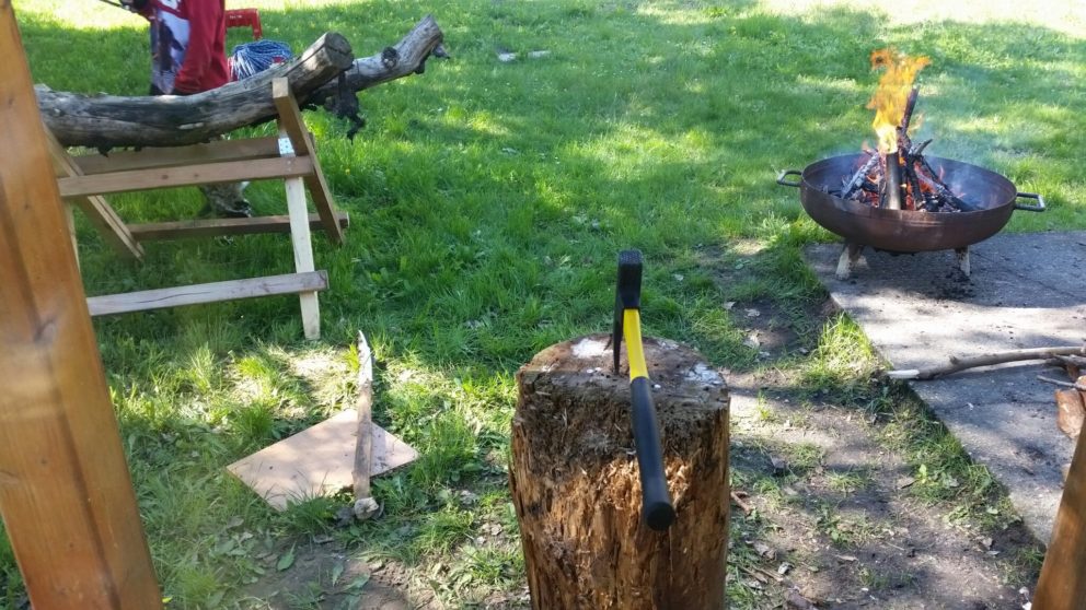 Diese Woche spielte leider das Wetter nicht mit. So mussten wir unseren Schmiedetag verschieben und auch die gestrigen ‚Lumber Games‘ werden wir demnächst wiederholen. Zum Abend hatten wir 10 Teilnehmer, aber für den Wettbewerb war es dann zu spät. Dennoch hatten wir trotz Regen einen lustigen Tag an den Stationen und neben Axtwurf, Sägen, Schmieden etc. gab es Kesselgulasch.