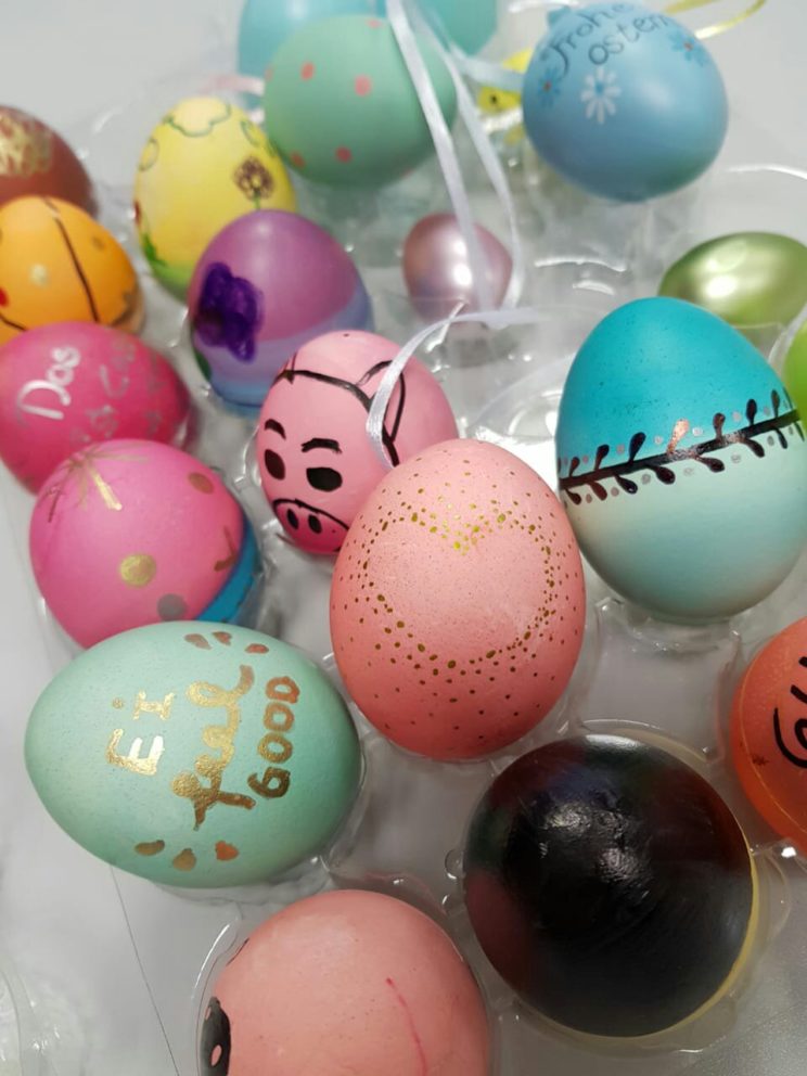 Viele (69!) toll gestaltete Ostereier sind bei unserer heutigen Ostereierparty entstanden. Eine ziemlich bunte Angelegenheit ?
